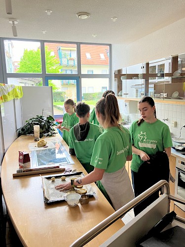 Am Sonntagmorgen, dem 21.4., dem letzten Tag der Aktion, feierten die Ministranten, die im katholischen Gemeindehaus im Großheppach übernachtet hatten, gemeinsam mit Diakonissen und Bewohnerinnen und Bewohnern den Gottesdienst in der Kapelle des Wilhelmine-Canz-Zentrums. Die Predigt hielt die Oberin und Vorsteherin der Stiftung, Dr. Antje Fetzer-Kapolnek. Mit einer Diashow erhielten die Gottesdienstbesucher einen Eindruck, was die letzten Tage geschehen war. Bis zum gemeinsamen Mittagessen im Speisesaal buken die zwei Jungs und vier Mädchen mit großem Eifer Kekse für den Kaffeenachmittag im Speisesaal. Begleitet von ihrem Chorleiter unterhielten sie die Gäste dann mit Chorgesang und spielten mit den Senioren Bingo. Den Abschluss des gelungenen Nachmittags und der 72 Stunden-Aktion, bildete für die Ministranten ein Gottesdienst in St. Elisabeth in Geradstetten am 21.04. um 17.07 Uhr.