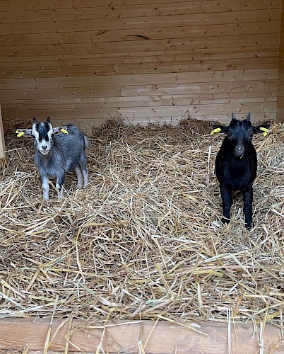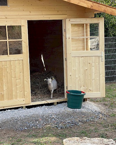 Das ist sicher, sie sind eine kleine Attraktion. Am Sonntag, dem 4. September, sind Caramel, Brownie, Şeker, Blacky und Schoki in ihr Gehege im Gemeinschaftsgarten eingezogen. Schnell haben die fünf zahmen Zwergziegen-Böcklein ihr neues Zuhause, ein großzügiges Gehege mit geräumigem Stall, Baumstämmen und Felsen als Klettermöglichkeiten akzeptiert. In direkter Nachbarschaft wohnen 8 Hennen in einem großen umzäunten Auslauf mit Hühnerstall.