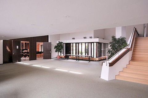 Das Schulgebäude verfügt über ein großzügiges Foyer und Aufenthaltsmöglichkeiten, um in der Gruppe zu lernen oder um sich in der unterrichtsfreien Zeit zu treffen oder einfach mal, um zu reden.