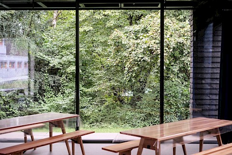 Der gesamte Gebäudekomplex ist eingebettet in Grün. Großzügige Außenflächen stehen allen Schülerinnen und Schülern zur Verfügung. Eine Unterrichtsstunde im Innenhof oder auf der Wiese im Park machen das Lernen abwechslungsreich.